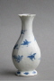 An attractive Chinese vase, made from soft paste porcelain, decorated in underglaze blue, and dating from the early Qianlong period c 1740-1760. The vase is of ovoid, fluted form and is decorated to the front with prunus, peony, bamboo and chrysanthemum emerging from ornamental rockwork. The reverse of the vase is painted with two butterflies amongst scattered flowerheads. The foot is decorated with a row of flowerheads. As is typical of soft paste items, the glaze is creamy white and lightly crackled. Height 13.2cm (5.2")